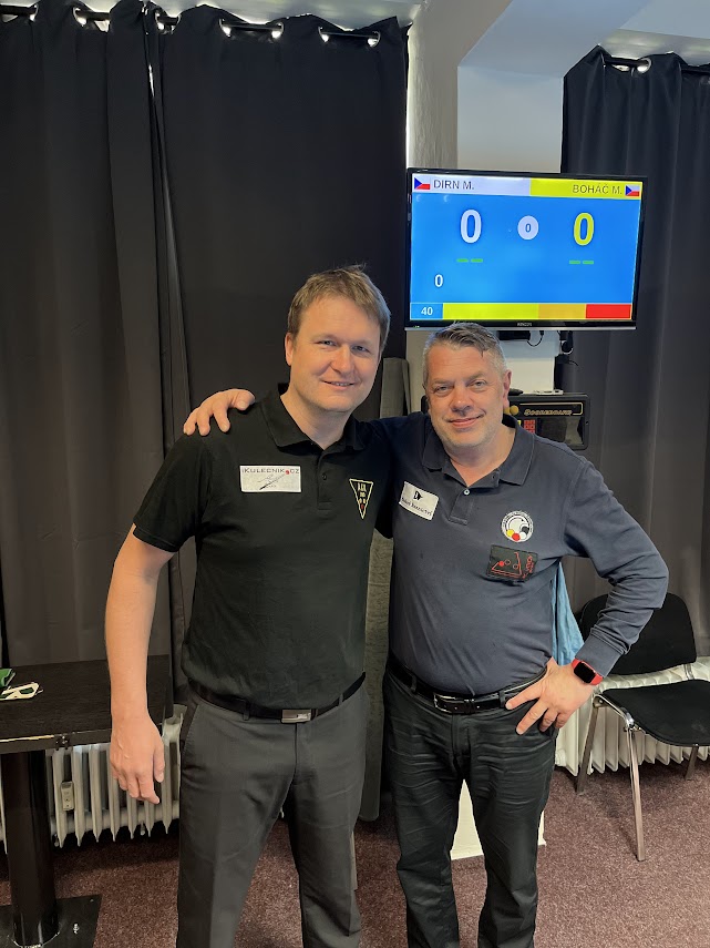Nasazená trojka Marcel Dirn sehrál napínavý zápas s Milanem Ettelem. Ve 42. náběhu zahrál Milan za stavu 34:33 sérii 3. Následující 4 náběhy ale nedokázal Milan proměnit ani jednu šanci. Marcel tak dostal prostor ze zvratu a ve 46. náběhu dohrál. První seniorská medaile pro Marcela u karambolového stolu. Pavel Škop dokázal držet tempo s Radkem Novákem jen v úvodnu zápasu. Ve druhé polovině byl lepší Radek a ve 42. náběhu zápas dohrál sérií 5. Pavel sice zahrál z dohrávky sérii 6, ale stále mu chybělo 7 bodů k remíze.