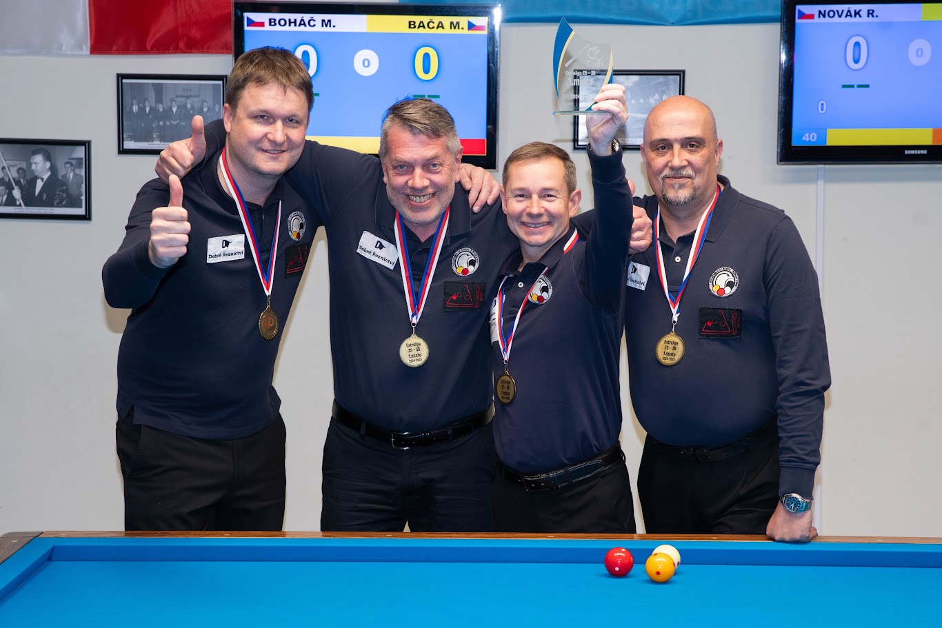 Sedmačtyřicetiletý brněnský hráč Martin Boháč se poosmé stává republikovým šampionem v trojbandu na velkém stole. Finálový zápas měl stejné obsazení jako v loňské sezoně. Avšak letos s opačným výsledkem. Obhájce titulu Radek Novák se dotáhl na rozdíl tří bodů, stav byl 18:21. Boháč ale okamžitě kontroval sériemi 4,10 a vedení o 17 bodů již nepustil. Martin během turnaje nepodával optimální výkony. Ten jasně nejlepší si ale schoval do finále, když nakonec zvítězil 26:40 na 23 náběhů. Oba finalisté nás budou stejně jako v této, tak i v následující sezoně reprezentovat na evropském šampionátu. Martin Boháč si rovněž zajistil účast na říjnovém světovém šampionátu.