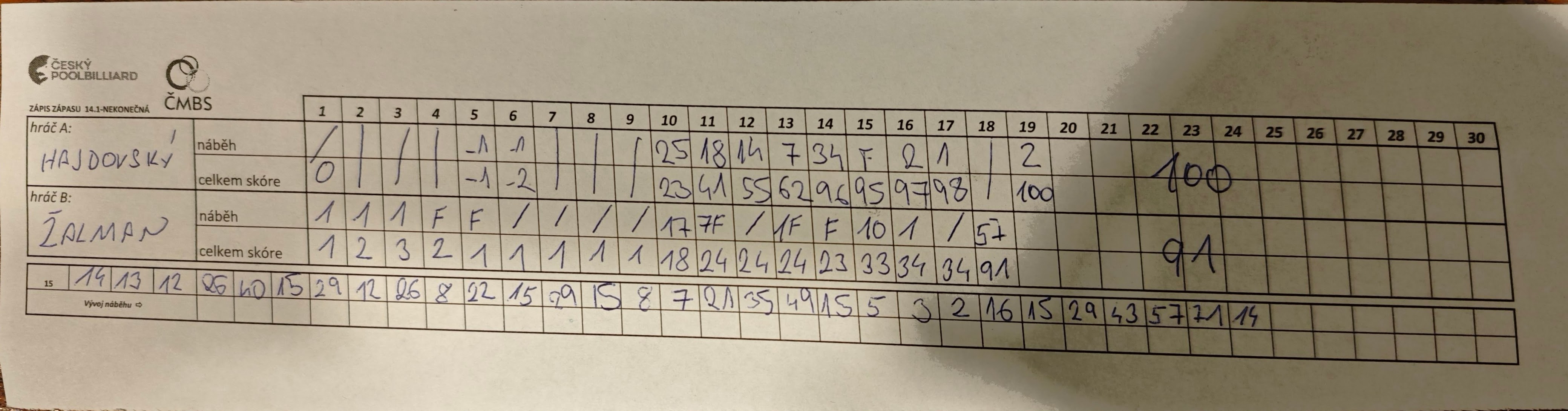 Vůbec zápasy byly zajímavé, za zmínku stojí to, že Marek Hajdovský vedl 98:34, David se nechtěl vzdát a zahrál solidní náběh a už už to vypadalo, že to dohraje do 100, netrefuje však kouli na střed a Marek dvě koule dohrává. I tak solidní náběh 57 pro Davida, kterým málem celý zápas obrátil.