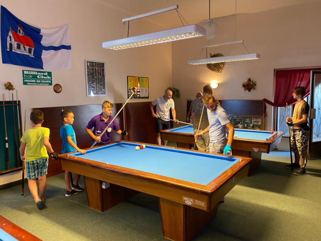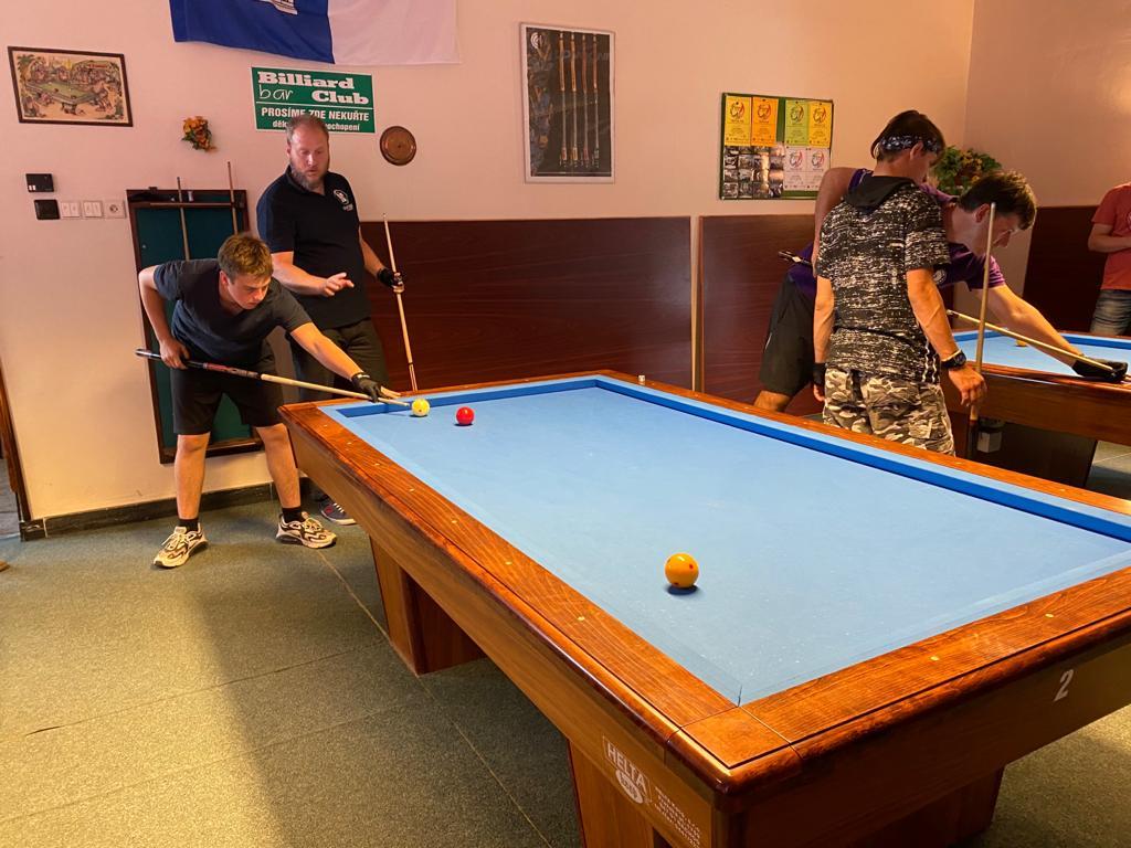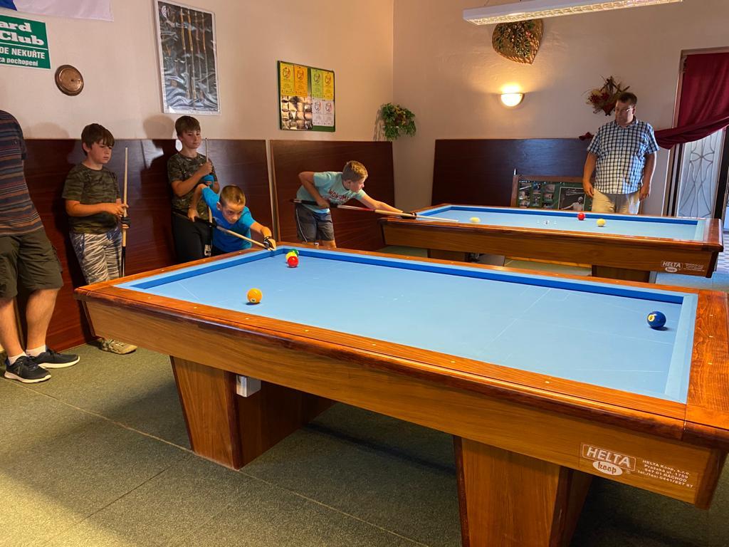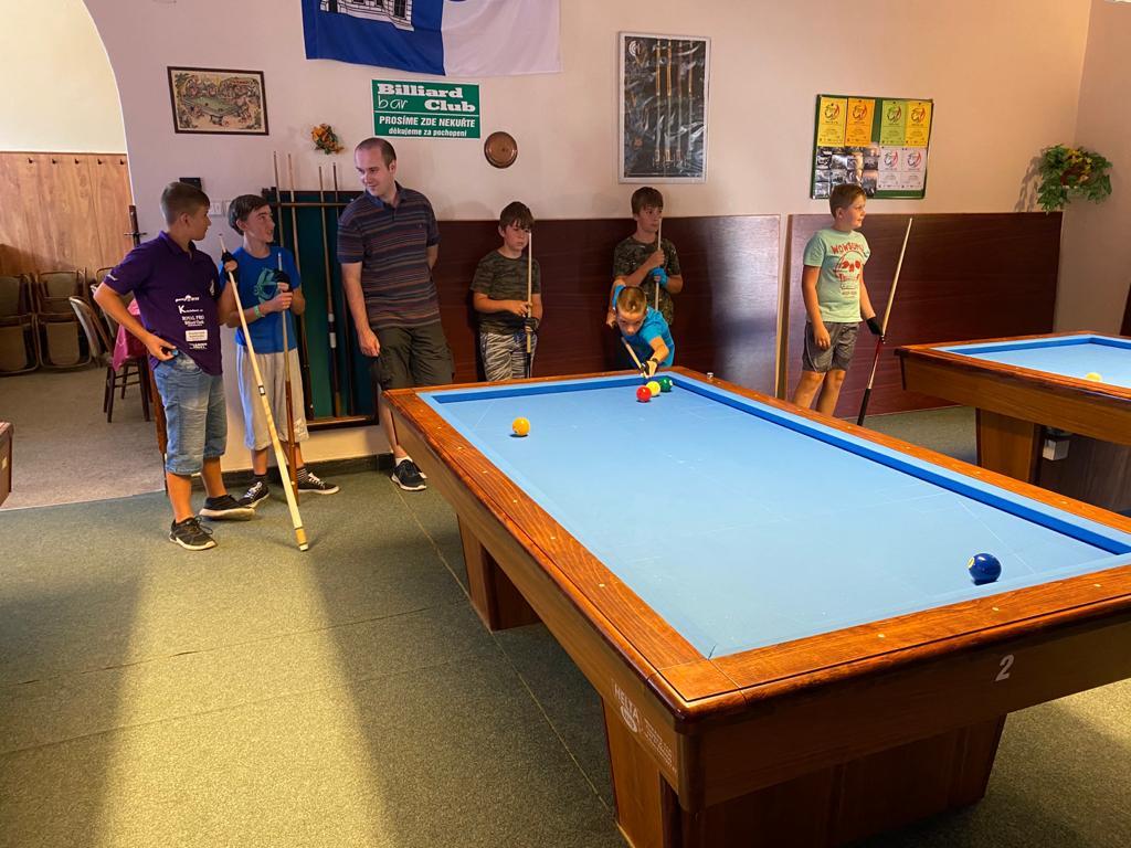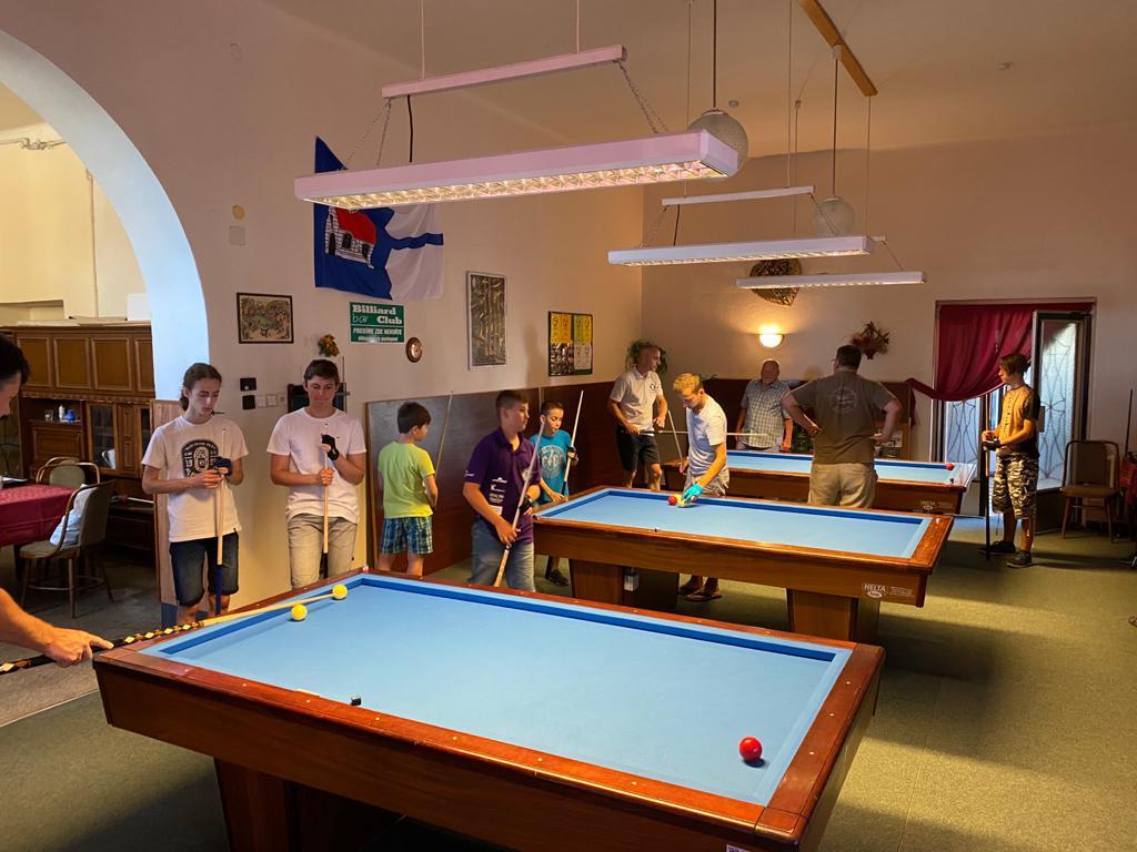 Různorodý program si pro naše mladé kulečníkové naděje připravili organizátoři kempu Veronika Rybáčková a Petr Bušanský. Start byl již v pátek dopoledne. Kluci byli rozděleni do několika výkonnostních skupin a postupně prošli pod rukami pěti lektorů, kteří se věnovali základům techniky, trojbandu, 5-pins a také sportovní psychologii. Pro naše nejmladší členy se osvědčila hra 5-ball, která nabízí více herních variant a mnohdy je v závěru spojena s taktikou a počítáním.
