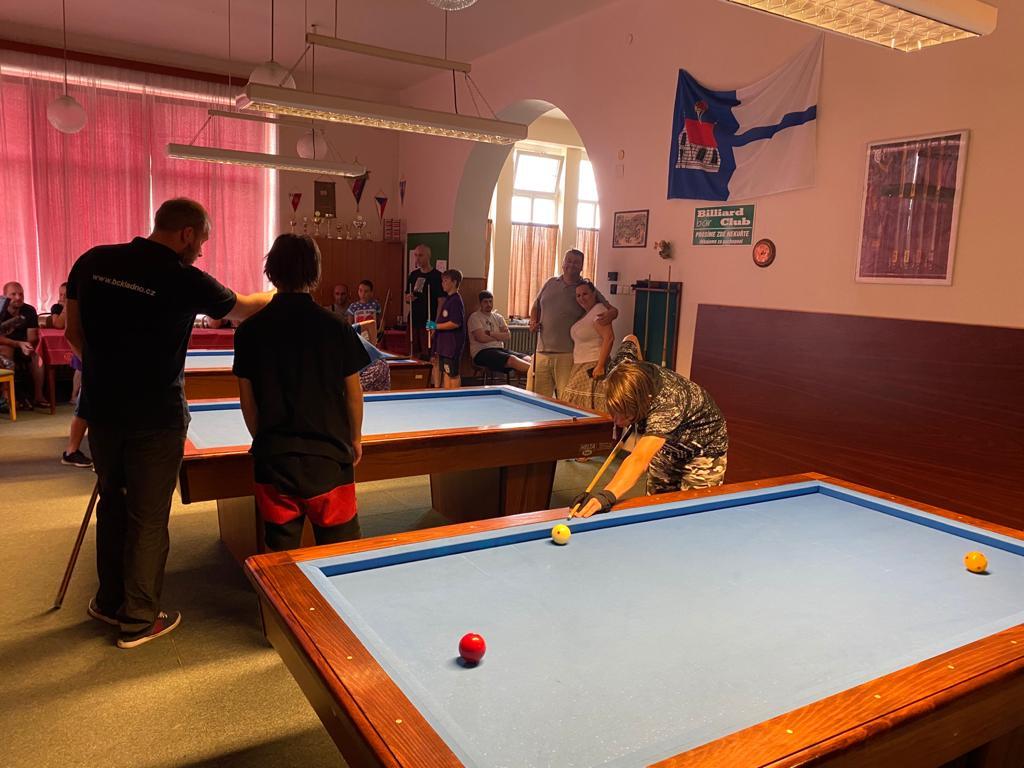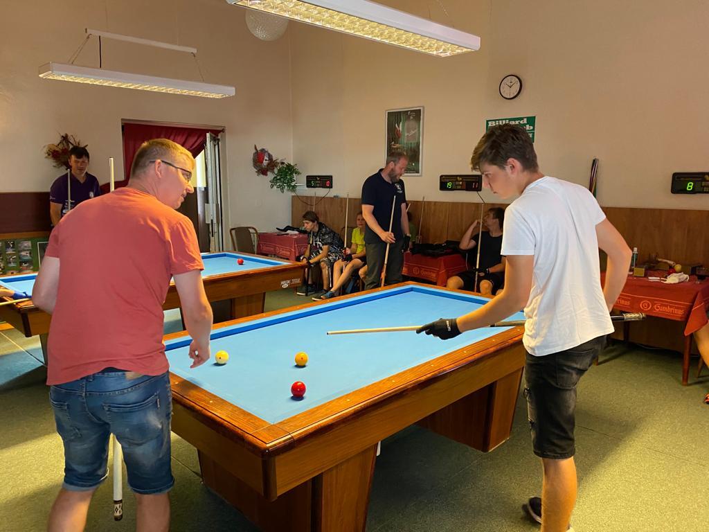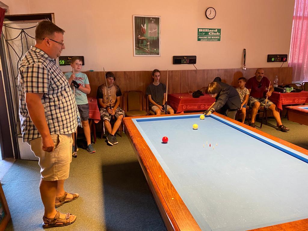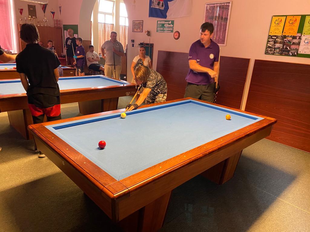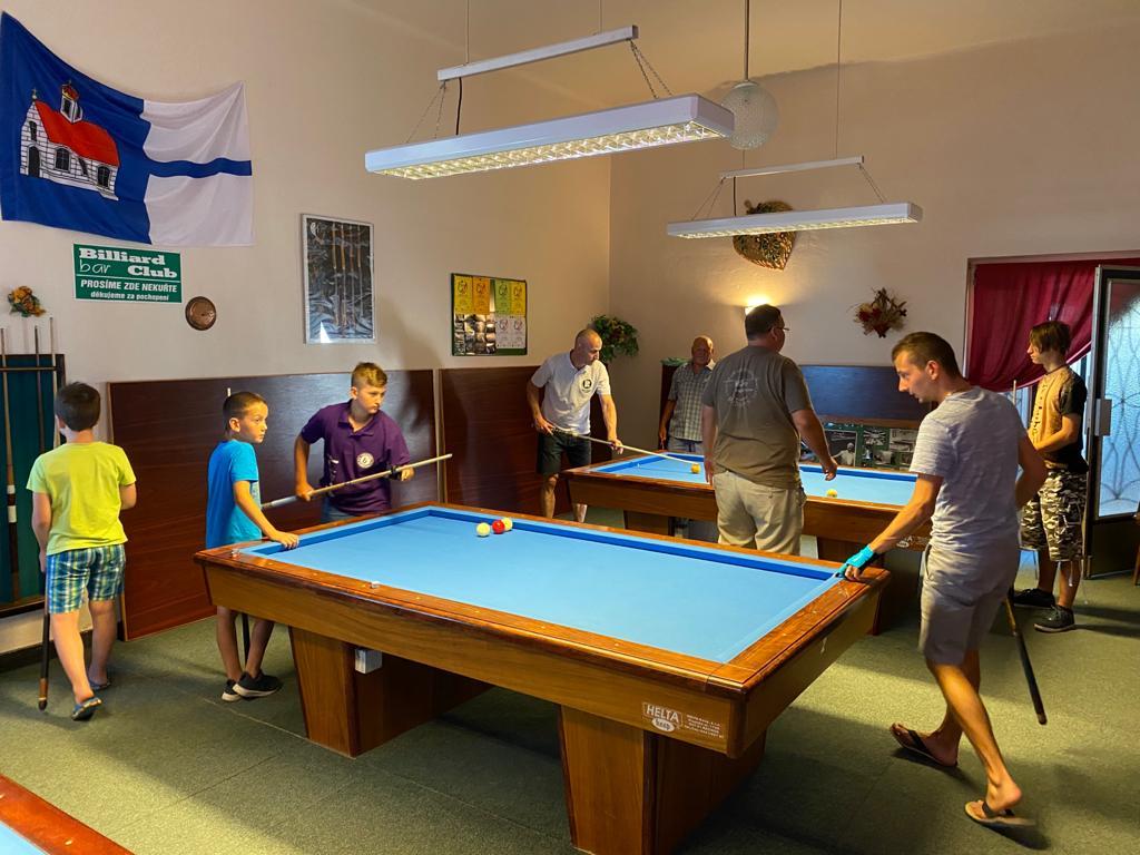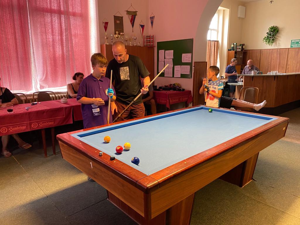 Různorodý program si pro naše mladé kulečníkové naděje připravili organizátoři kempu Veronika Rybáčková a Petr Bušanský. Start byl již v pátek dopoledne. Kluci byli rozděleni do několika výkonnostních skupin a postupně prošli pod rukami pěti lektorů, kteří se věnovali základům techniky, trojbandu, 5-pins a také sportovní psychologii. Pro naše nejmladší členy se osvědčila hra 5-ball, která nabízí více herních variant a mnohdy je v závěru spojena s taktikou a počítáním.