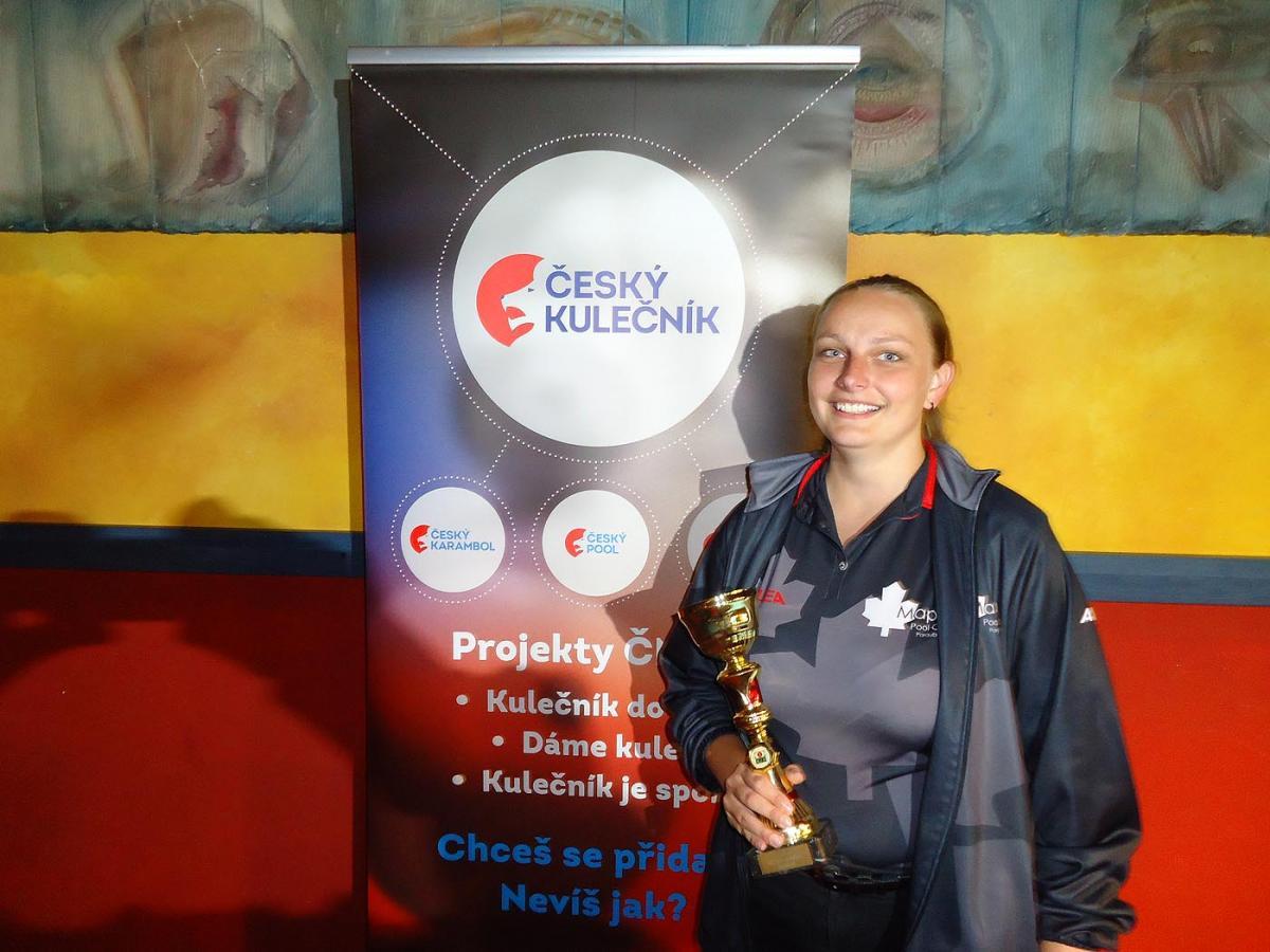 Veronika dobře řeší stůl, vypadá to na snadnou dohrávku a další mistrovský titul, ale přichází chyba na šestce, která je nepřesně trefená a končí vyklepáním před kapsou. Eva už nabízenou šanci nepustí a vyhrává svůj první titul mistryně ČR!