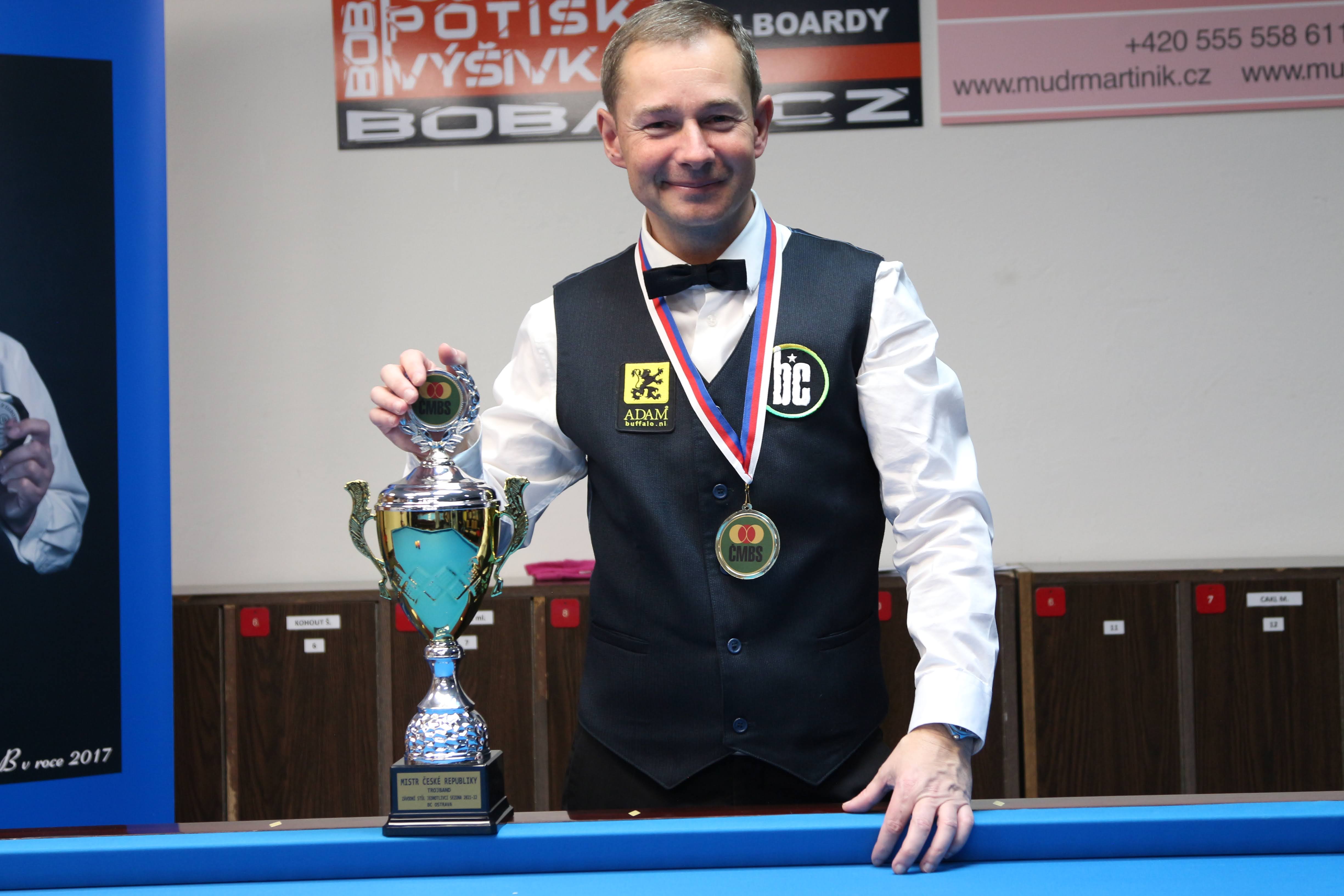 Brzy pětačtyřicetiletý Radek Novák prožívá svoji nejúspěšnější sezónu. Hráč Billiard clubu Kladno si z ostravského klubu veze všechny nejcennější medaile letošní sportovní sezóny v disciplíně trojband na závodním stole. K již jistým zlatým medailím za celkové vítězství v seriálu Velkých cen a Extraligy čtyřčlenných družstev si dnes Radek pověsil na krk medaili nejcennější. A to z šestatřicátého republikového šampionátu jednotlivců. V krásném finále, které sledovalo na dvacet osobně přítomných a téměř sedmdesát online diváků, Radek porazil svého odvěkého soka havířovského hráče Iva Gazdoše v poměru 40:35 na 27. Radek triumfuje na závodním stole v trojbandu přesně po deseti letech. V roce 2012 porazil ve finále republikového šampionátu Jana Hudáka v poměru 3:1 na sety.