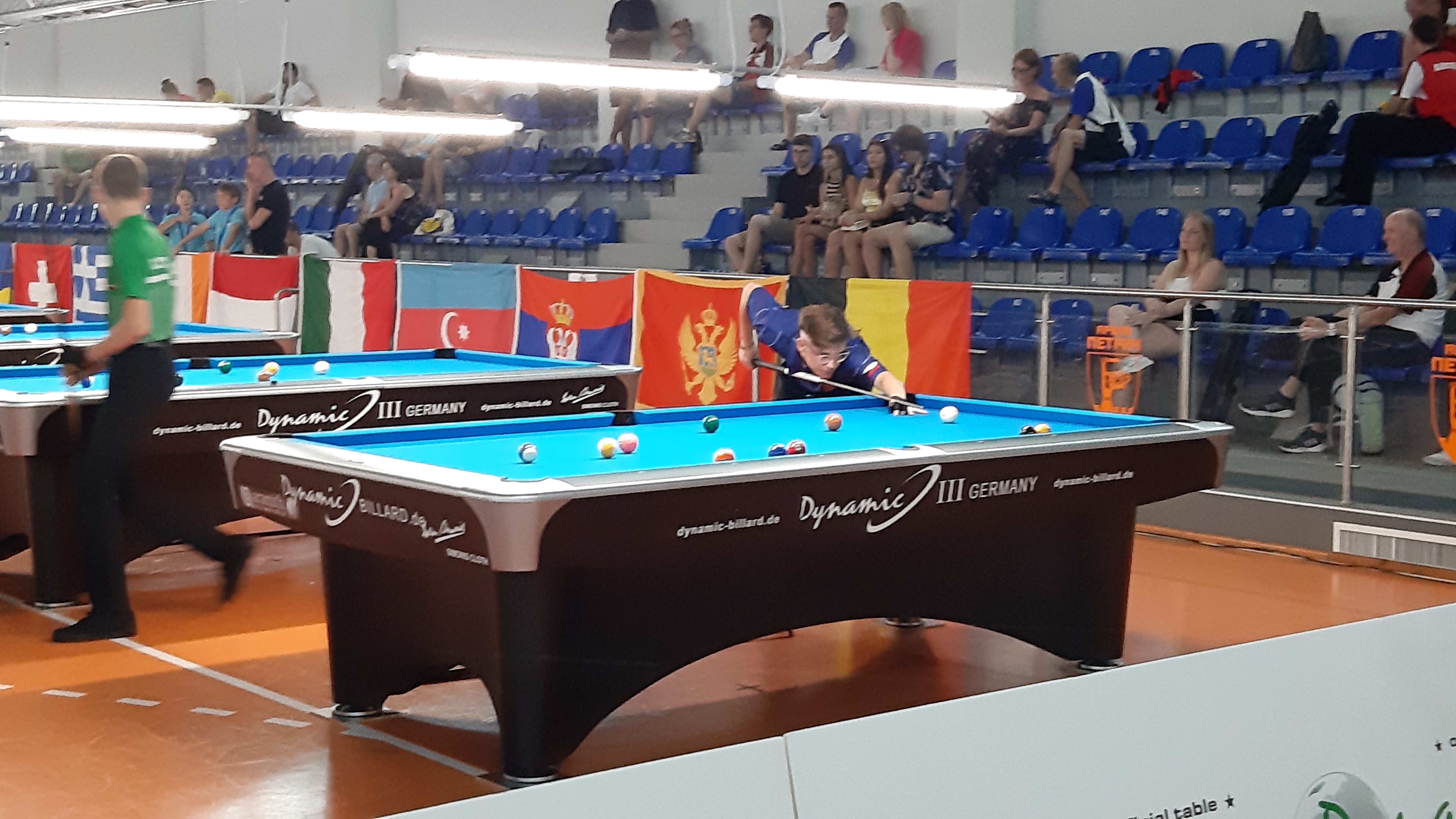 Po úvodní 14.1 nekonečné následovala na MEJ jako další disiplína 10 ball. Kluci se stoly již trochu sžili, což bylo vidět i větším sebevědomí a koneckonců i lepším umístění než v předchozí disciplíně. Dál to bude o herních zkušenostech a také o tom, jak se vyrovnají s tlakem turnaje nejvyšší evropské důležitosti.