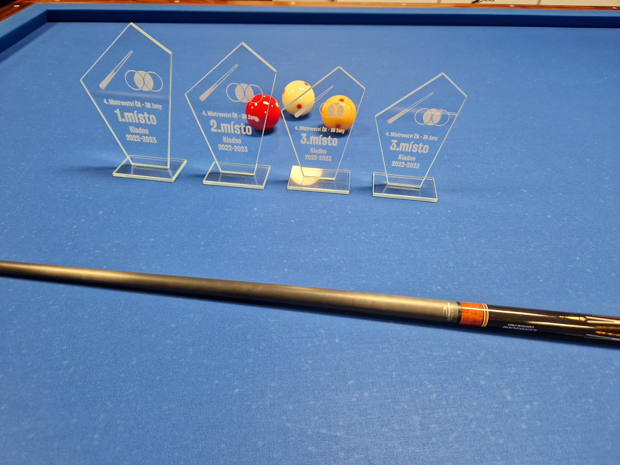 V pořadí 4. republikový šampionát v trojbandu žen na velkém stole se uskutečnil tuto neděli v kladenském klubu. V domácím prostředí se povedlo svůj vůbec první republikový titul získat Veronice Krausové. Ta ve finále porazila hráčku 1. KK Chomutov Kateřinu Zárubovou 10:4. Katka se postarala o největší senzaci turnaje. V semifinále totiž vyřadila největší favoritku a vítězkyni předchozích tří ročníků Irenu Michálkovou.