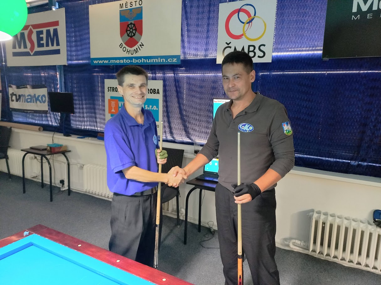 Stejný průběh mělo utkání mezi Andrejovským a Bačou. Mirek dohrál kádr ve 4. náběhu. Jednoband si rozložil do tří náběhů – zápis 13-19-18. Zvítězil 50:35 a zajistil si postup do finále. Andrejovský korigoval výhrou v trojbandu 15:11 na 8.